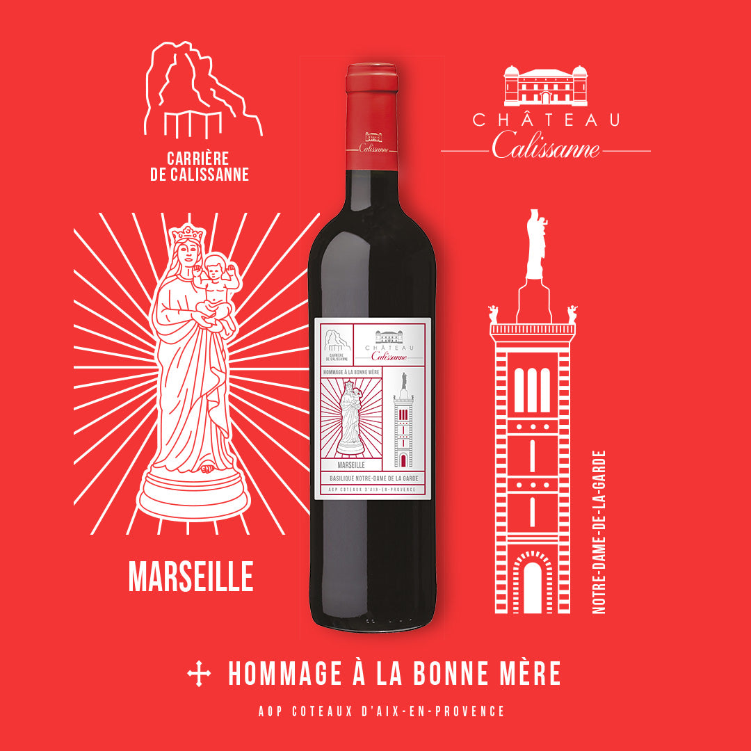 Cette cuvée solidaire, « Hommage à la Bonne Mère », est destinée à participer à la restauration de la statue de la Vierge Marie, située au sommet de la basilique Notre-Dame de la Garde. Ce monument emblématique de Marseille fut édifié en 1852 avec des blocs de pierre calcaire provenant des carrières historiques du domaine, comme ce fut aussi le cas pour la cathédrale La Major au cours de la même période.